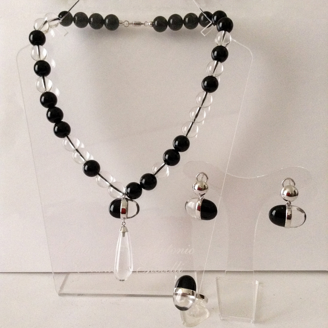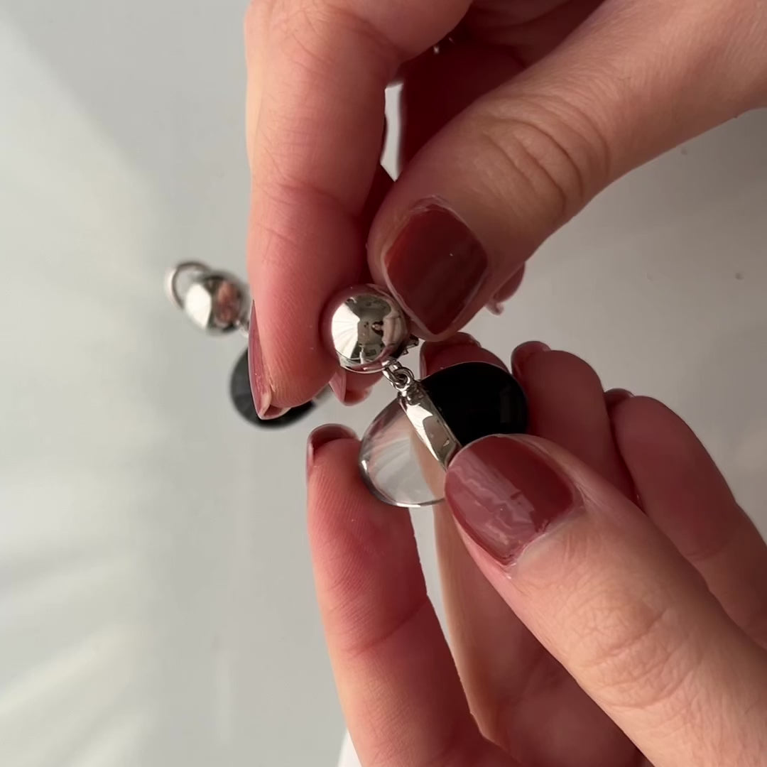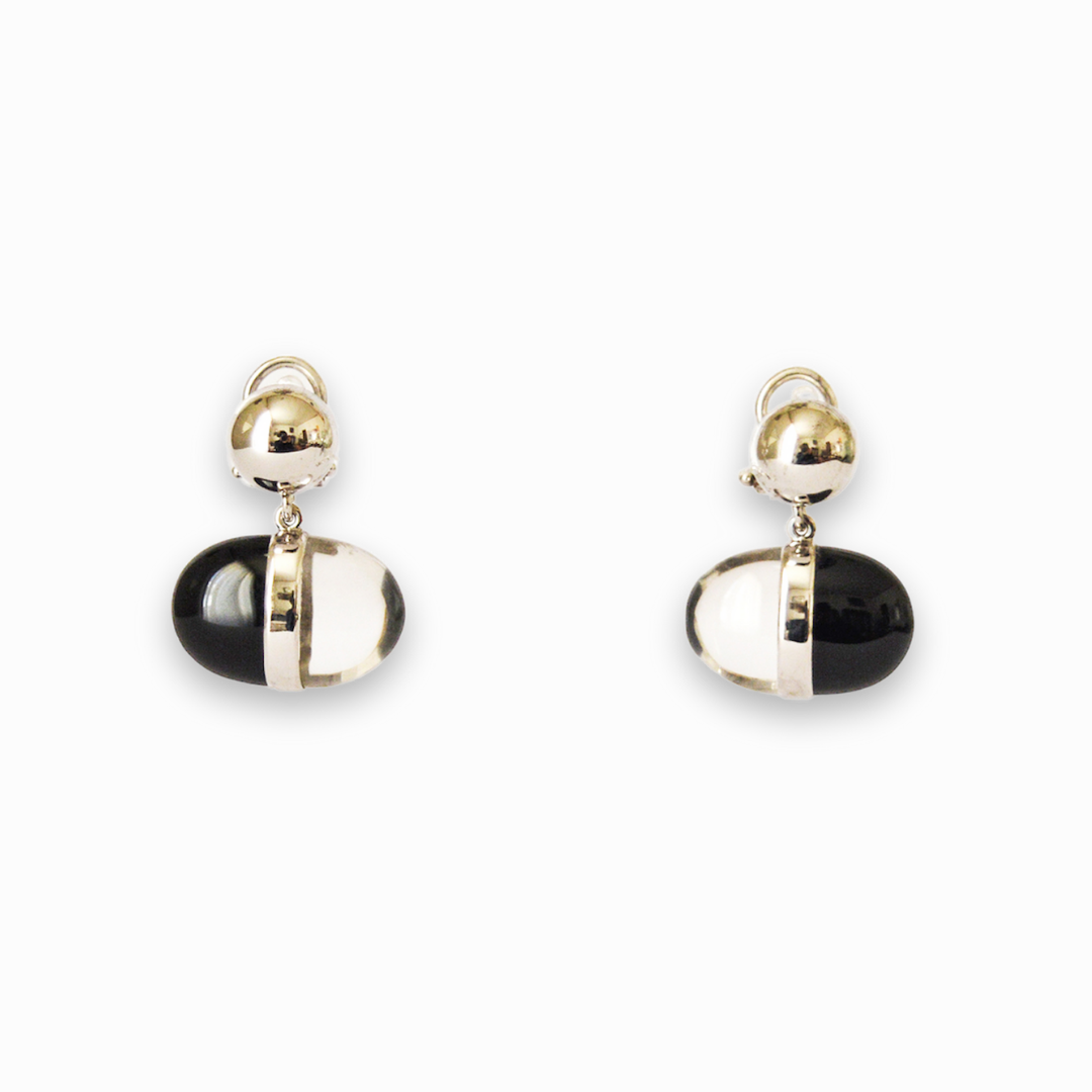 Gli orecchini 'Thos' sono realizzati con onice e cristallo di rocca. La combinazione dell'onice con il cristallo di rocca crea un equilibrio visivo straordinario, rendendo questi orecchini perfetti per una varietà di occasioni, dal casual all'elegante.